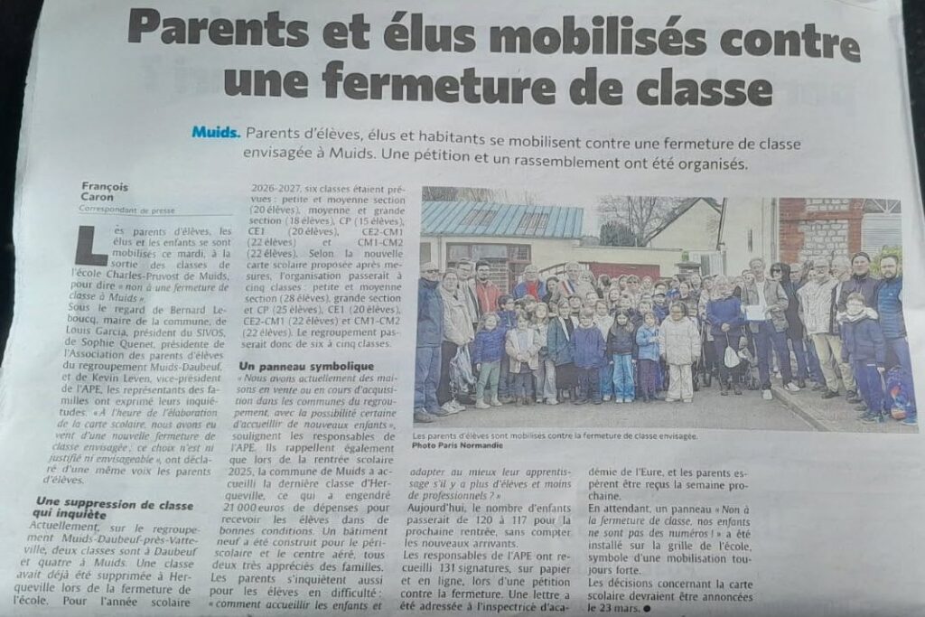 La fermeture d’une classe à l’école de Muids met en danger la qualité de l’enseignement de nos enfants. Nous ne pouvons pas accepter ça !