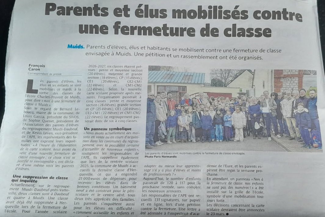 Chers parents, enseignants et habitants de Muids et alentours,