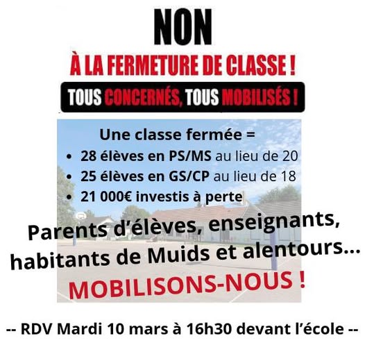 Parents d’élèves, enseignants, habitants de Muids et alentours : venez nombreux !